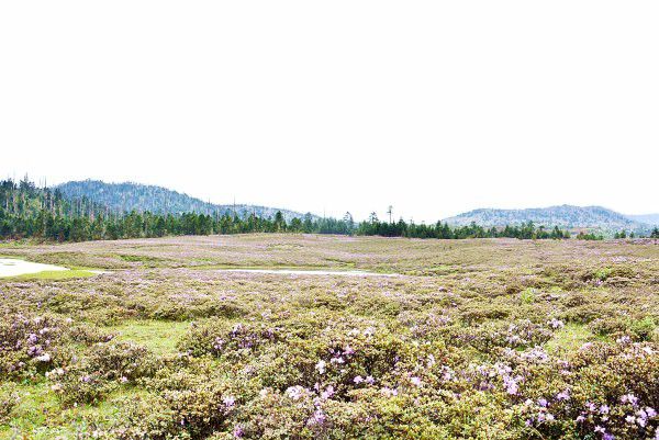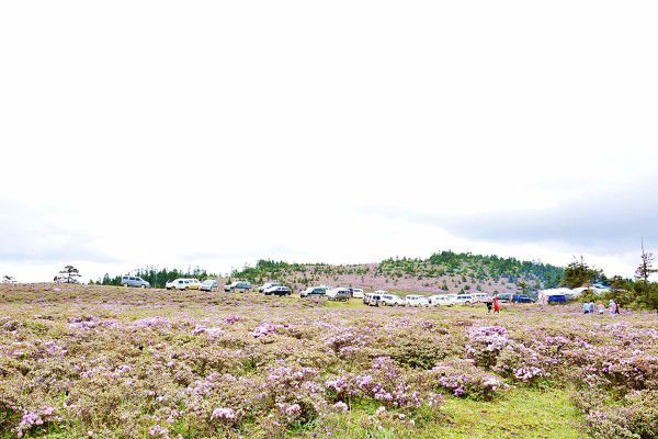 又到了小中甸的这片杜鹃花海,云层依然很厚,已经有不少车在这里停留了,像我这种两天都来的估计也是没有了。