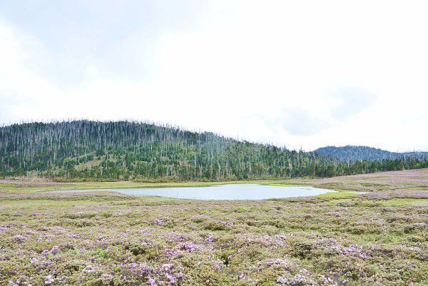 碧沽天池藏语称“楚璋”,意为小湖。因地处碧沽牧点,遂取名为碧沽天池,湖虽不大,也不深幽,但呈现奇异的静和奇异的清,清澈澄明的湖水,仿佛就是其周遭那个多姿多彩的花草树木的世界所捧出的纯洁的心魂。碧沽天池周围不仅有大片的原始森林,有绿茵茵的牧场,有安静的牛群羊群,更动人心魄的,是湖畔的杜鹃花。