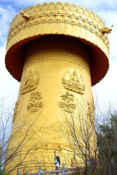 白天转经筒的人少,而这经筒没几个人根本转不起来。据说这是世界上最大的经筒。
