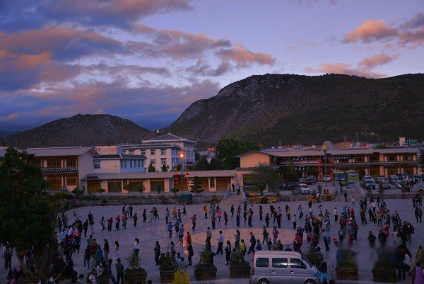香格里拉晚上气温很低。牦牛火锅吃完全身都很暖和了,吃完到处走走,月光广场,这个时候就开始聚集很多人在这里跳藏式坝坝舞了。音乐都是广场广播统一放的哦。后面陆续有很多游客加入进去。看着气氛很不错哦。