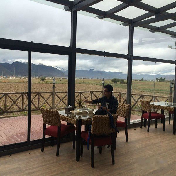 坐飞机从成都到香格里拉很近,一个小时多一点,20点左右到香格里拉机场的时候天还很亮呢,这里日落比较晚。入住的格桑梅朵别院有免费接机,是一个面包车,一路上都在问我们这几天要去哪里,估计是想从我们身上赚钱,我说没安排呢。。毕竟我们已经预约了一辆越野。。