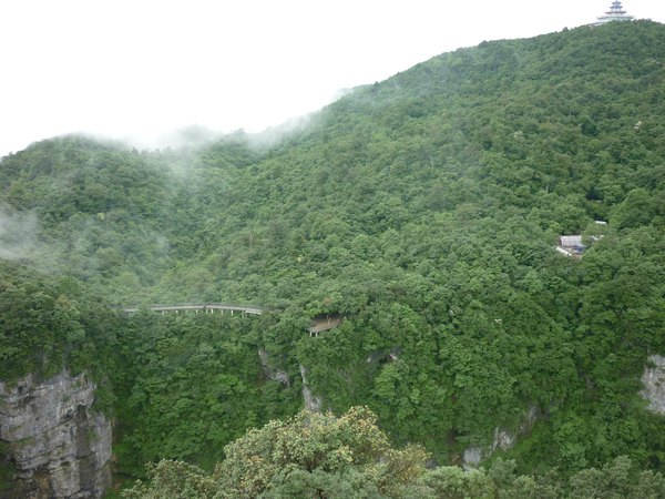 由于是雨后,在栈道上则是身边雾气盘绕,脚下云海翻腾,令人抬腿似生雾,迈步如踏云,人间天界,世外洞天也就是如此了。