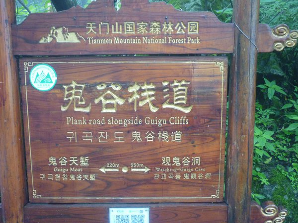 鬼谷栈道位于觅仙奇境景区,因悬于鬼谷洞上侧的峭壁沿线而得名。栈道全长1600米,平均海拔为1400米,起点是倚虹关,终点到小天门。与其他栈道不同的是,鬼谷栈道全线既不在悬崖之巅,也不在悬崖之侧,而是全线都立于万丈悬崖的中间,给人以与悬崖共起伏同屈伸的感觉。