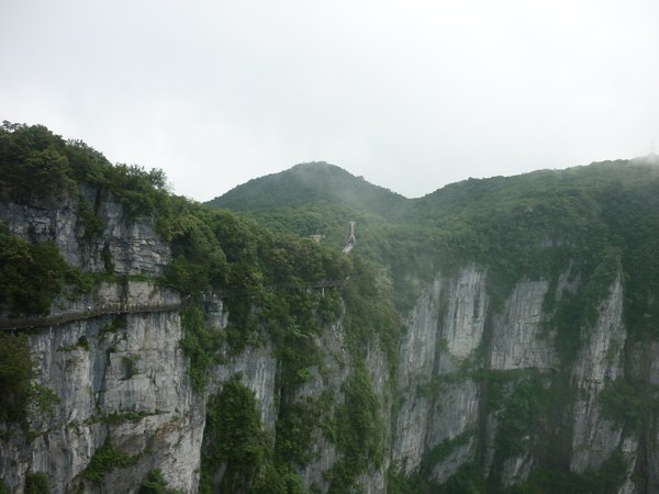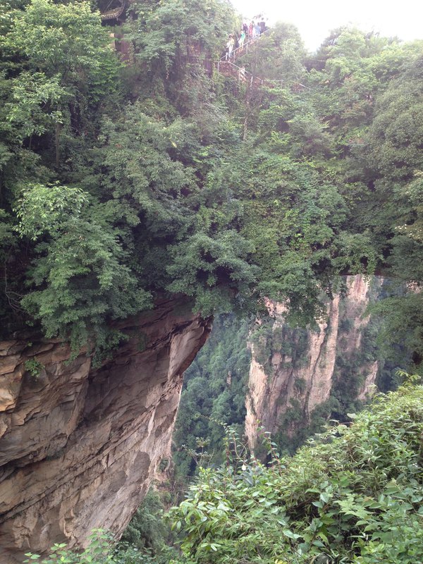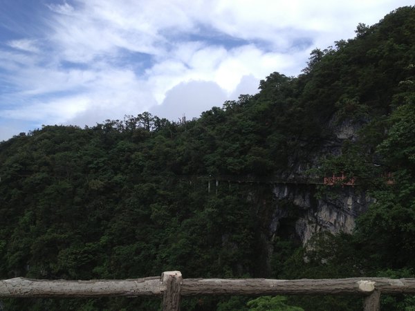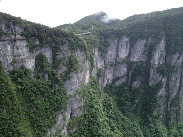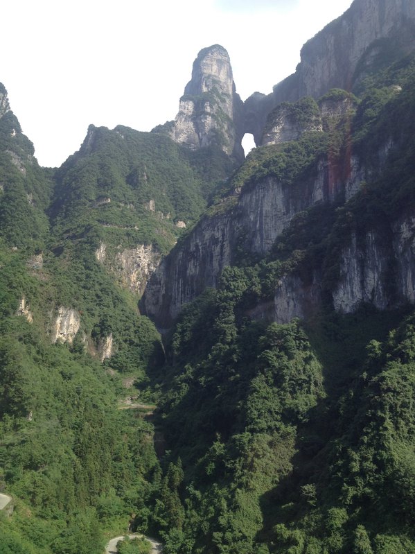 站在栈道上俯瞰群山,古人“会当凌绝顶,一览众山小”的感觉油然而生。由于天门山是国家森林公园,植被特别丰富,加上典型的喀斯特地貌,所以,在这条栈道上更能找到一种在乘坐直升飞机飞越热带雨林大峡谷的感觉,这平时只能在电影里看到的场景,在这里能让你身临其境。