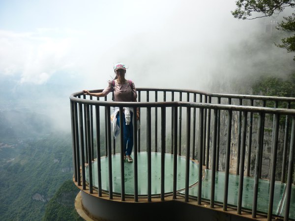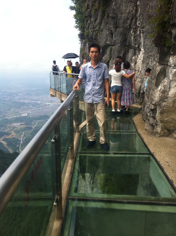 玻璃栈道悬于天门山山顶西线,长60米,最高处海拔1430米。是张家界天门山景区继悬于峭壁之上的鬼谷栈道、凭空伸出的玻璃眺望台、从玻璃台可以看见下面。玻璃台伸出栈道有4-5米,专供游人拍照、横跨峡谷的木质吊桥后打造的又一试胆力作。