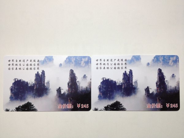 10:00到达张家界森林公园大门(31公里),购买门票RMB245/人,保险RMB3/人,景区内采用通票,3天有效,要输入指纹才能通过。