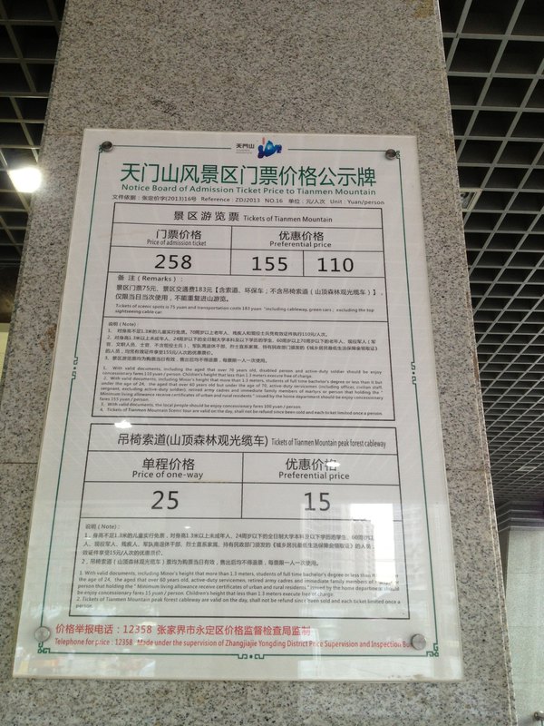 Day1 1日游览天门山(全票RMB258 保险RMB3 )宿张家界市区