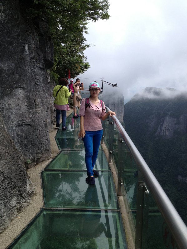 这条看着就让人腿软的玻璃栈道给人带来的刺激震撼感可与举世闻名的美国大峡谷玻璃走廊“天空之路”媲美。晴天时,蓝天和白云的倒影铺满了整条栈道,让人在对脚下的透明战战兢兢之余,更乐享于踏云而行的快感;云雾天气,玻璃栈道则在雾中若隐若现,天上人间的美景更是让人惊叹不已。