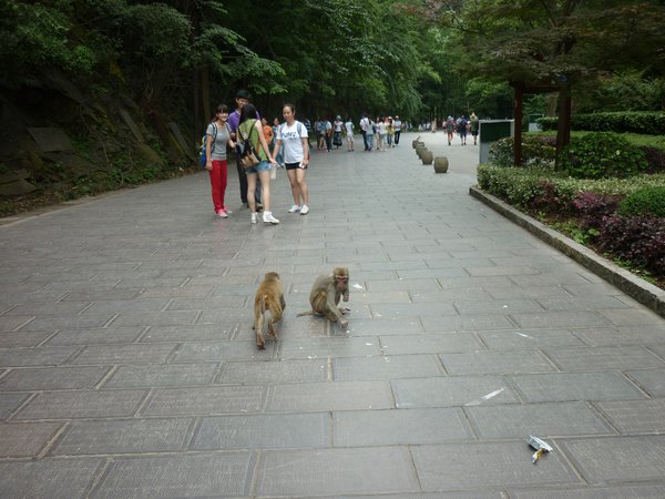 这好多野猴出没 看到手提塑料袋装吃的就扑过去抢。。。所以大门口好多卖布袋的 RMB10一个