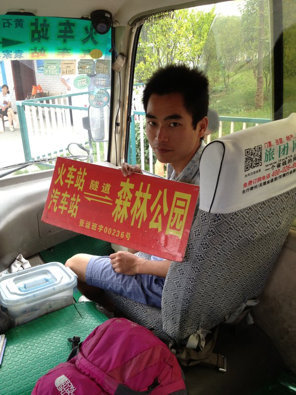 D2:小麦带我们到汽车站直接上车 车费RMB12*2 写有森林公园 武陵源 天子山字牌。到 森林公园 、武陵源 每10分钟一班, 到天子山每30分一班 车费RMB15