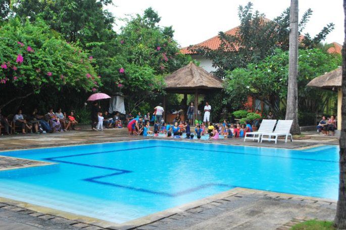酒店的游泳池,早上有一些当地的小孩儿在学游泳。