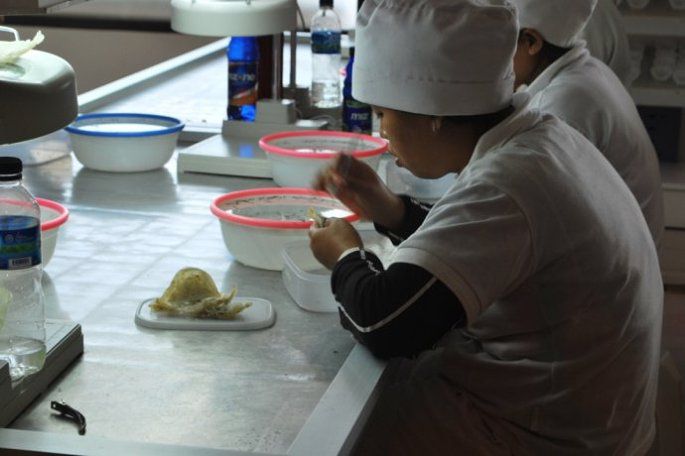 很多工人在里面挑毛,看起来很繁琐,我们在里面逛了会儿,燕窝买不起,就尝了下试吃的印尼美食,购物点就全部结束了,后来才知道,同团的好多人都买了很多,Chinese People的购买力是非常强大的。