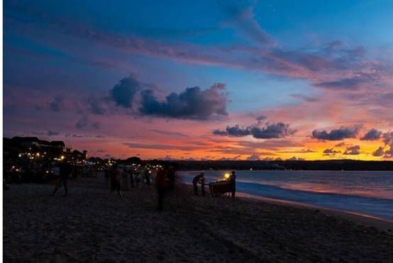在我们的要求下,司机带我们去了一个沙努尔海滩,很多当地人在那里游泳,但是感觉没有水清沙净。看完就走。接下来来到了传说中的金巴澜海滩看日落。
