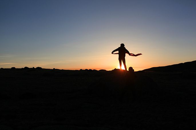 海子山顶,微空辽阔,大地铺满浓浓的夕阳,骤降的气温中我依然心怀喜悦。