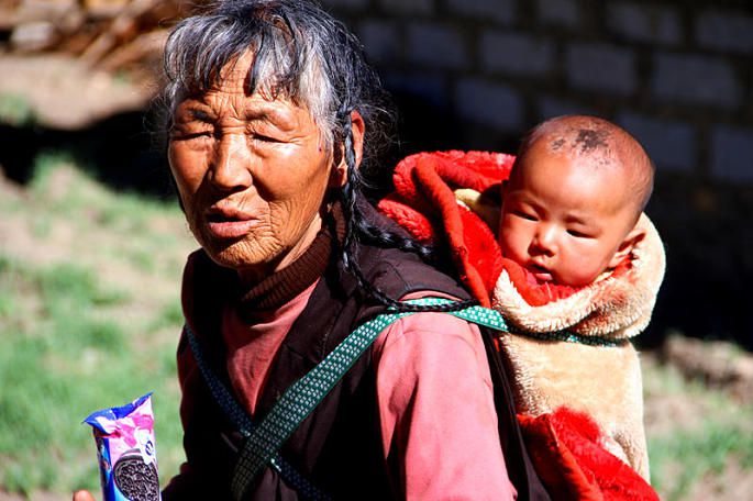 看着藏族的老阿玛,还有她的孙子~淳朴