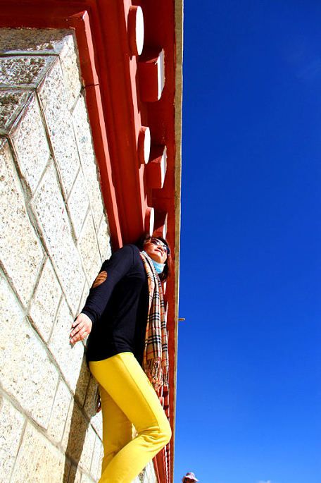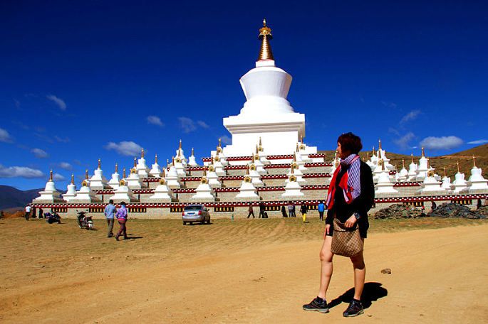 潇洒姐在稻城最大的迎宾塔~那种放松只有在哪里才会知道~