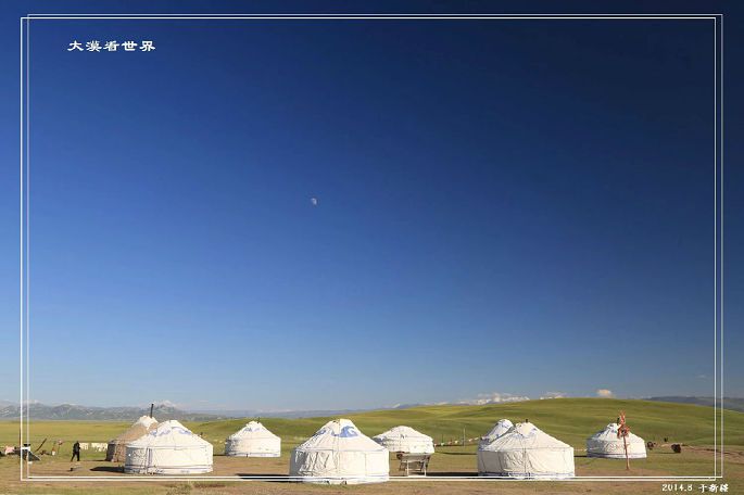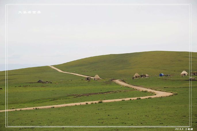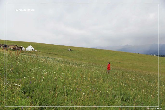 最后,翻过了前面的大坡,下行不到500米,终于看到了我们的目的地——喀拉峻别克家的蒙古包: