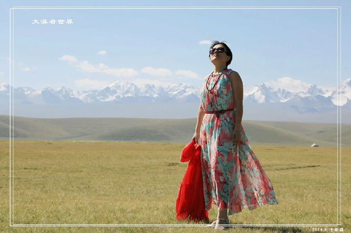 为了配合这美丽的草原,特意换上专门带来的裙装,臭美了一把。难得穿裙子貌似坚硬的自己,在这丰美的草原上,也自然而然有了一种柔媚(朋友言)。