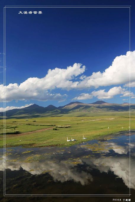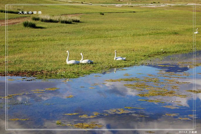 湖边的草场十分丰美,据说前 一个多月盛开着各色鲜花,更加美丽。而野生天鹅就在湖中自由游弋。