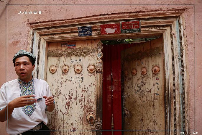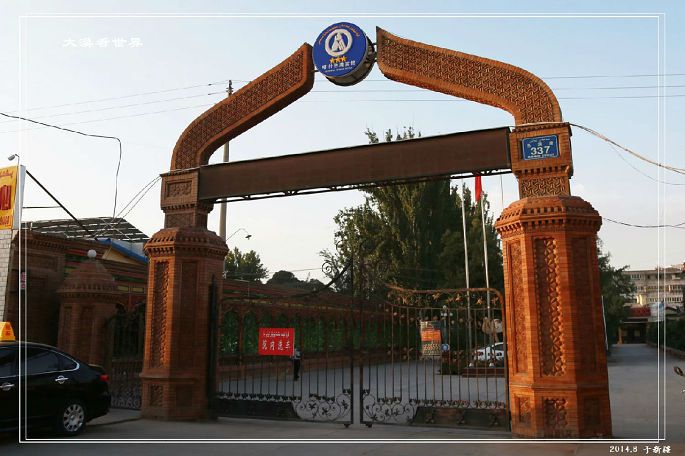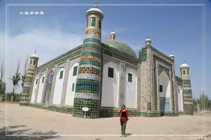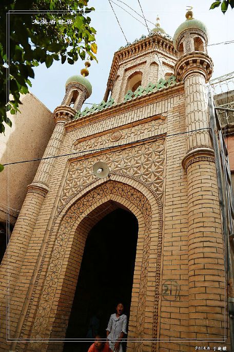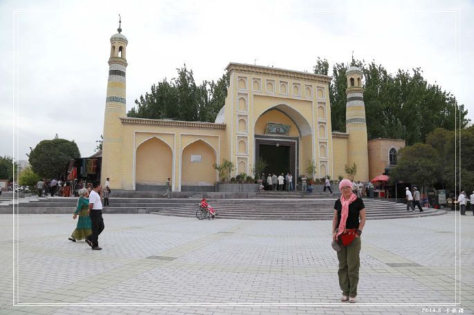 就在我们去喀什前几天,塔依尔大毛拉阿吉被杀害了,这里气氛比较紧张,我们去的时间不凑巧,正好是信众做礼拜的时间,所以只在门口照相到此一游。