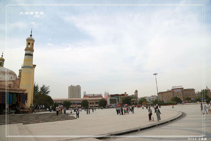 艾提尕尔清真寺——坐落于艾提尕尔广场西侧,占地25.22亩,它不仅是新疆规模最大的清真寺,也是全国规模最大的清真寺之一。这是一个有着浓郁民族风格和宗教色彩的伊斯兰教古建筑群,坐西朝东。