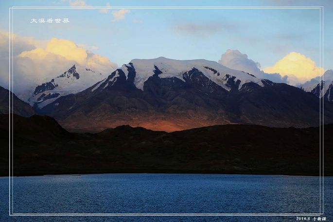 开着开着,突然看到逆光下耸立的慕士塔格峰,大家惊呼起来,为他的雄伟挺拔: