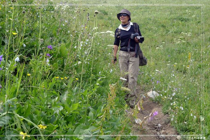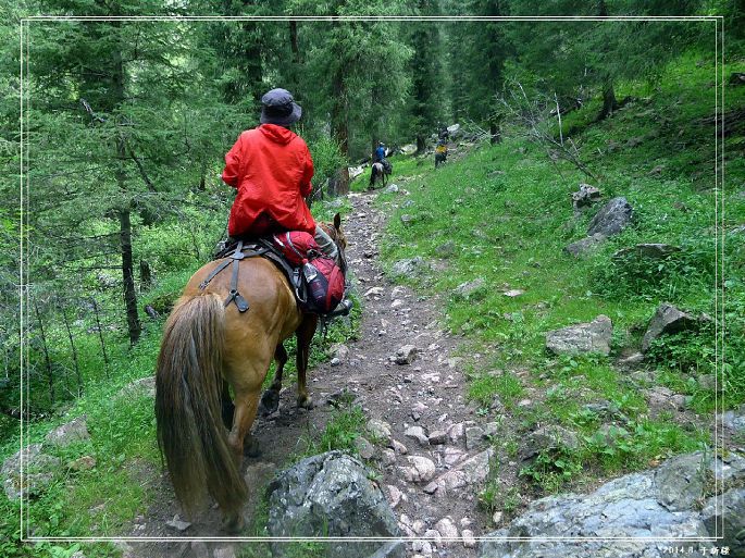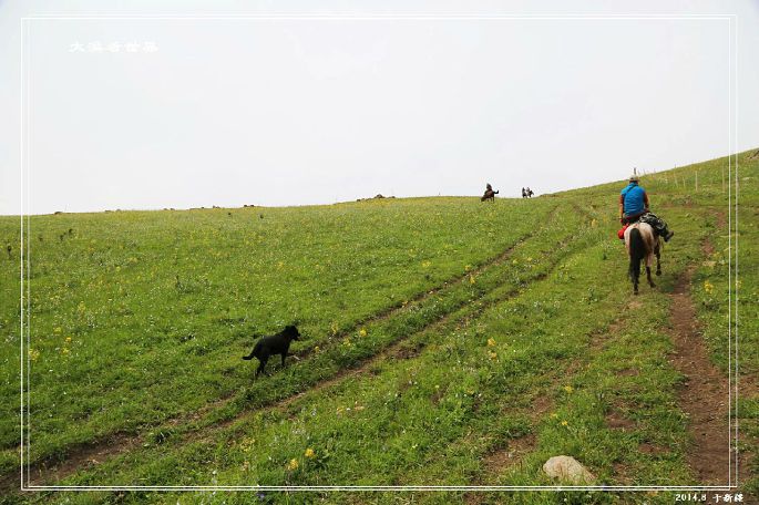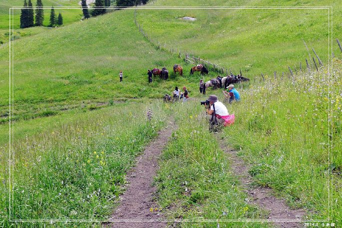 然后就是一段下坡,花路太美,我们都下来走路,让马儿休息下: