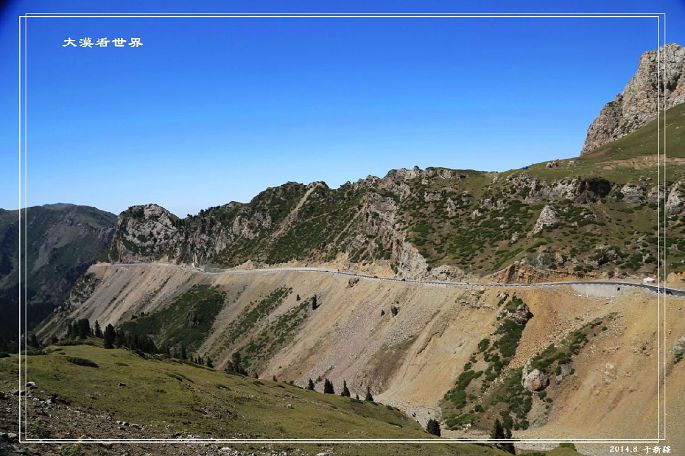 到达最高点后下山,景致开始完全不同。北疆一边景色秀美;南疆一边荒凉辽阔。