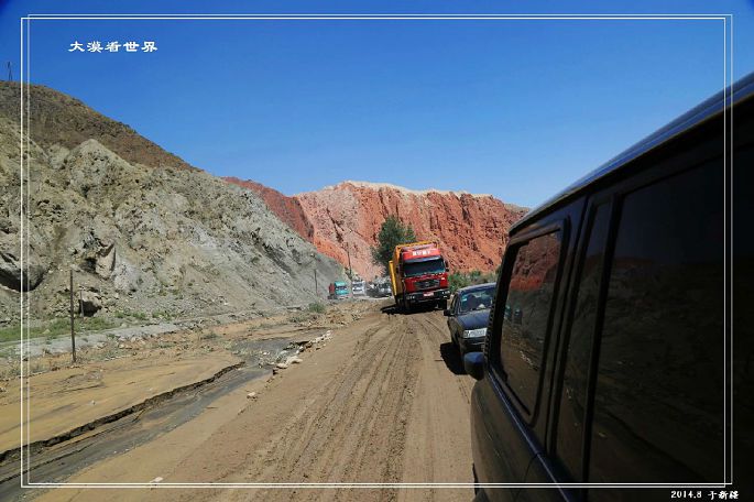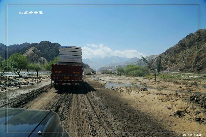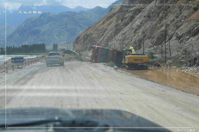 这段路总体路况还不错,但从喀什到塔什库尔干中有段路况非常不好。虽然仅300公里,却时时有可能因塌方、滚石、泥石流封路,且气候千变万化,正晴空万里,瞬息就会大雪纷飞。就在8月10号晚,还发生了一次比较大的泥石流而导致人员伤亡和500余车辆的长时间堵塞,我们12号到这一路段时,仍然因为泥石流的余威被堵车一个多小时。在这样的路上,一切都只能靠运气。
