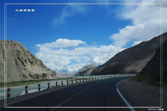 走出峡谷,上到高原,这一路一直到塔县,路都很好了。雪山一路随行,蓝天白云,心旷神怡: