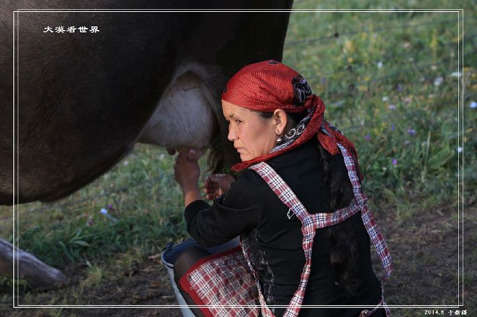 喀拉峻草原上挤奶的大妈: