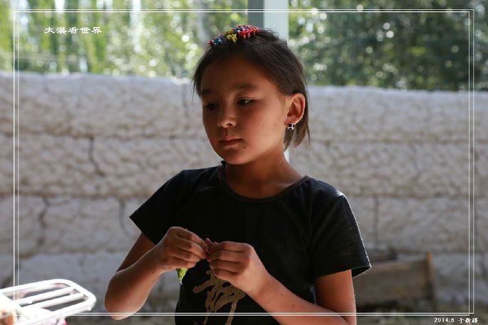 巧遇正在放牧的哈萨克父女,父亲不会说汉语,女儿布尔兰,在县城读初三。他们热情地给我们指路,并和我们一起唱歌,教我们骑马。