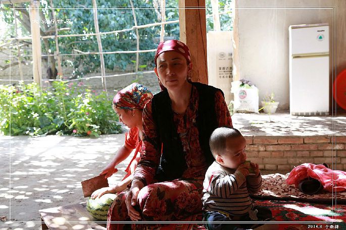 这一路上,不能不说,不论在乌鲁木齐的大巴扎,还是库尔勒、库车的街头,不论是在乌帕尔乡的集市还是在喀什老城和小饭馆里,我也都感觉到过一些维族人敌视的可怕目光。但,当我用坦然友好的目光与之对视,用微笑和友善面对他们时候,这样的敌视总是会减弱甚至消除。而在南疆一路,每当我们随意走进一户人家,他们都会热情的端出奶茶和瓜果,大家一起分享,在征得同意后,也非常乐意面对我的镜头。