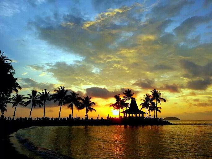 sunset bar,在香格里拉酒店,香格里拉酒店很赞啊,但是700-800一晚只能让我当个景点看看了。沙巴2月的日落大概是6点一刻。我去5点左右到的,然后我坐在草坪上一边做作业一边等日落。sunset bar 要收费,我就在外面的沙滩上,静静的看着远处的人群,风景更胜。