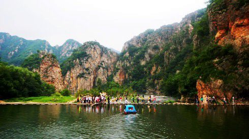 关于冰峪沟到底是从东门进还是南门进,其实都可以,所谓的区别就在于一个是先坐船进去,一个是后坐船出来,南门进有个先可以看一个千层石阶圣水寺景点(稍后有照片),不过这个如果有老人或者特别小的孩子的话还是不要尝试了,会很累,直接略过就可以.
