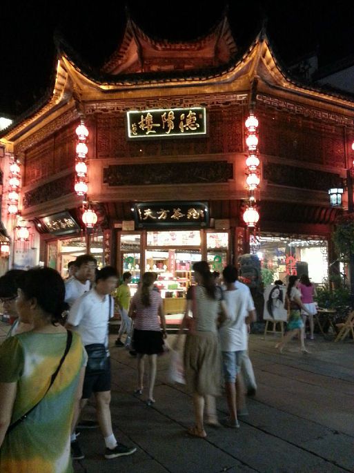 先在老街解决了晚饭。一边消食一边逛了老街不错,夜晚景色也好,人很多,很热闹。典型的徽州建筑,很多店面,各种工艺品。不过工艺品和很多旅游景点差不多,只购买了一些当地特色小吃。最后打车回了宾馆,每辆10元。