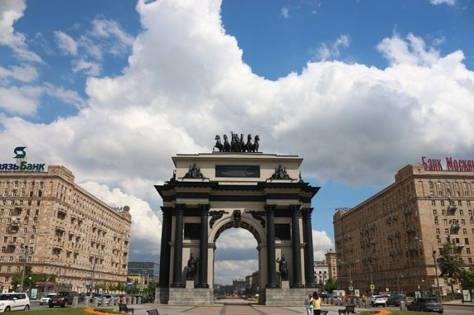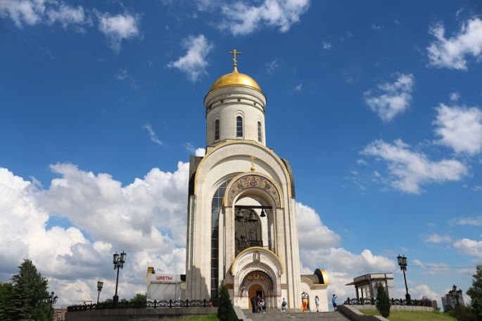 胜利公园(Парк Победы,在同名地铁站下车即到),比较冷门的景点,我主要是去不成法国有点好奇凯旋门而跑去看的。莫斯科的凯旋门也跟巴黎的那座纪念同一场战争,不过俄国人说他们打败了拿破仑。现在的门好像是重修的,不知为什么选用黑色我不是很喜欢。胜利公园本身我能记得的三个地方就是:路边摊的雪糕挺好吃;教堂挺漂亮;看到莫斯科大学远景了可以不用跑实地去了。