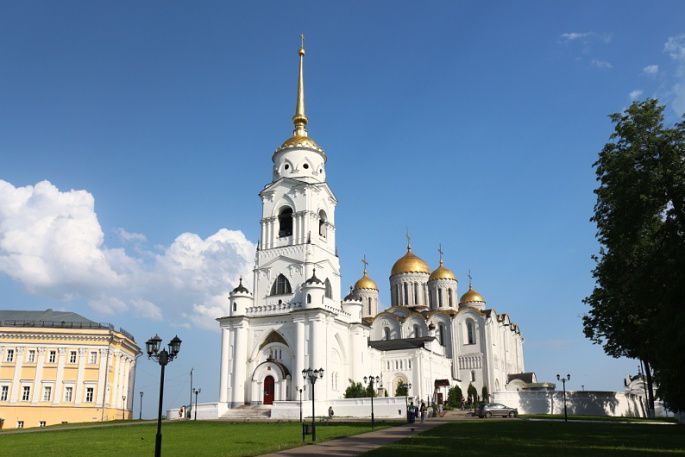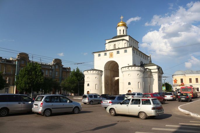 整个苏兹达尔风光如画足够呆两整天,但火车不等人我一早买了票中午就得离开。累了的我一心想坐巴士到汽车站,但问路不顺畅在巴士站边等了快二十分钟也不见车停只好步行完成那两公里。再有耐心的小伙伴去游玩可以尝试等等那6路巴士,虽说打的好像也才100卢布。原路返回,之前仅被我当成交通中转站的弗拉基米尔其实也是名城一个,世界遗产名录里登记的就是弗拉基米尔和苏兹达尔历史建筑群,主景点离火车站很近,赶紧过去看两眼。圣母升天大教堂(Успенский Собор)和金门(Золотые Ворота),离火车站20分钟左右步行路程。