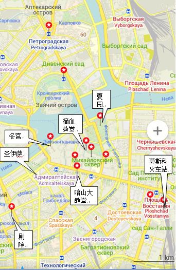 以下建筑均在市中心的涅瓦大街附近,我大致按从西往东列,带中文地名的大地图请到穷游网查阅。