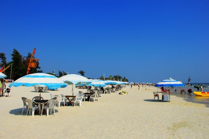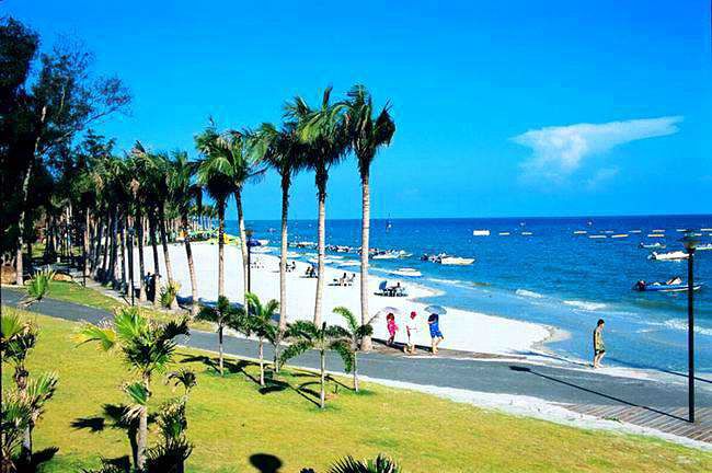 | 逛完海洋之窗,也差不多下午了。太阳变得不那么火热,是时候去海边玩水啦,目标银滩,出发。 银滩位于北海市南部海滨,西起侨港,东至大冠沙,绵延24公里,沙质洁白细腻,在阳光的照耀下反射出银色的光芒,故称银滩。其以 “滩长平、沙细白、水温净、浪柔软、无鲨鱼”的特点,被誉为“天下第一滩”。在很多人眼里,银滩就是北海的代名词。由于银滩地势低平,几乎无坡度,入水100米处水深仍不足以没顶,加之海水涨潮慢,退潮快,所以银滩海域是最适合畅游的地段。 银滩海域水质洁净,透明度可达2米以上,海岸植被丰富,空气中负离子含量超高,是最适宜的疗养场所,故银滩也有“南方北戴河”之称。海滩上建有沙滩排球、足球、卡丁车、摩托艇等娱乐项目,可以各取所需,尽情享受阳光沙滩。玩累了,还可以躺在沙滩椅上,看着喧闹的人群,直到夕阳西下,惬意无比。 | ||||||||