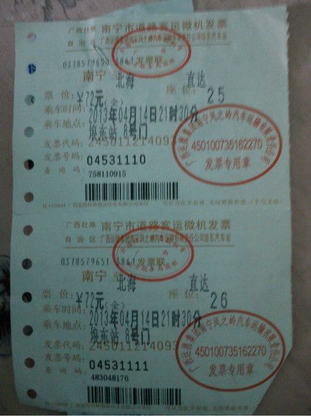 由于在涠洲岛网上订了第二天早上八点半的船票,所以我们时间有一点点的紧张,必须要在22:00前赶到南宁琅东汽车站,坐到北海的车。还是比较幸运的哈,飞机八点钟降落在机场,南宁机场很小的,大概只有重庆江北机场的五分之一大小。出门之后坐机场大巴20元(其实就是小中巴车),路上堵了一会儿车,旁边的美女说这里从来不堵车的,我晕,这么倒霉。到了终点站后果断黑车直奔(20元),还是在九点10分赶到了琅东汽车站,买了9点30分去北海的汽车票。75元一人