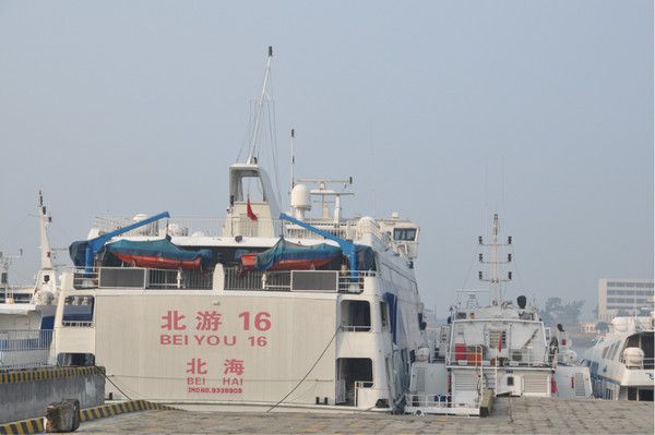 从如家步行到北部湾广场大约5分钟,出租车依然不会打表,20元直奔国际客运港码头,上车后发现早饭问题还没解决,司机师傅耐心推荐附近有肯德基,买了点早饭,师傅也耐心的等。比重庆敬业呀!沿途也没有给我们推荐什么吃海鲜之类的,就随便聊了聊,大概开了20分钟就到客运港了,其实没多远,可是北海的红绿灯超多,时间超长。