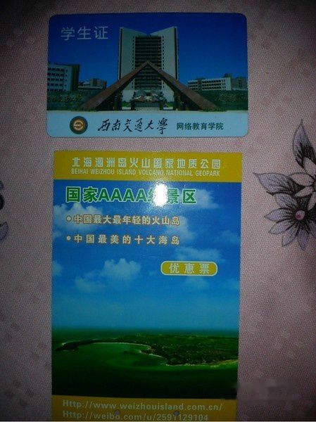 成功抵达涠洲岛,准备买上岛票,带了成人教育的学生证,这个在我们那边基本没用,可是在涠洲岛派上用场了。