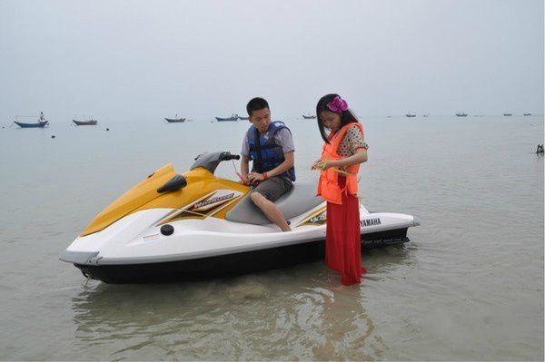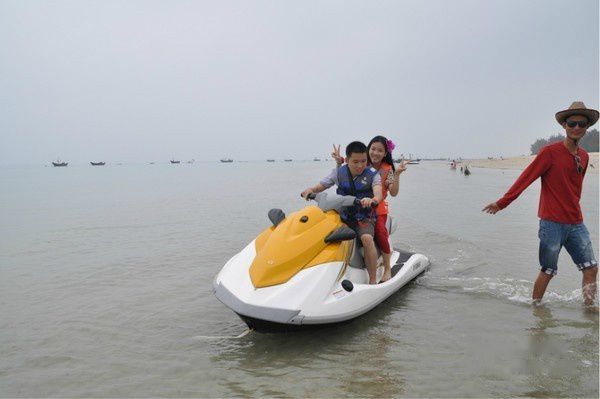 摩托艇,15分钟200块,刺激呀!!!女友在后边被吹得口水都流出来了