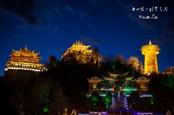 月光古城其实很美,但是晚上了,有点冷,果果冻得不行,所以也没敢放肆的去拍照片,转动世界上最大的转经筒后下山,恰遇当地人民的广场舞,热情美好,boss家的大美女和果果也被吸引的下场跳舞,这时候也不知道冷了,晚饭吃的是领队推荐的小馆子,好吃而且便宜,饭馆老板推荐了牛奶干,好像是这么叫的吧,说是当地特色,当晚最贵的菜,既然来了就点呗,但恕我直言,我还是吃不惯,酸、腻……大家你看我我看你但是不能浪费啊,于是就决定行酒令,输的吃,可怜的我接受这东西的能力很慢,第一把啥都不知道就被罚了,回宾馆的途中阿弟开始恶搞,于是一行人商量一定要恶搞领队一下,咱可是演技派的