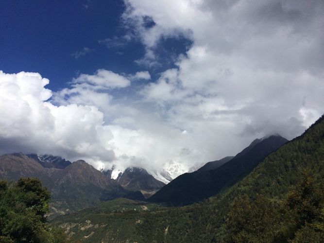 南迦巴瓦峰,海拔7782米,三大坡壁大都被冰雪切割成风化剥蚀的陡岩峭壁,终年积雪。直白村是欣赏南迦巴瓦峰的最佳地点。云雾散去,南迦巴瓦峰露出它的尖尖角。大自然的魅力就在这里,一阵风一片雨,风光就完全不同