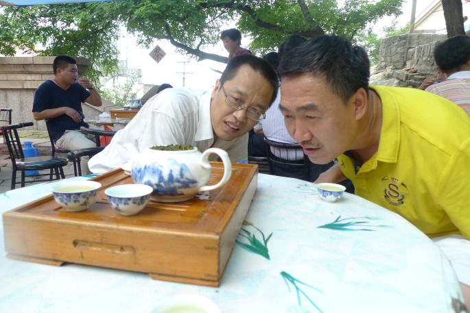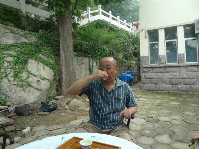 在登崂山途中坐下来,细细地品一壶好茶,这是何等的享受呀!一壶茶的价格是八十元,我们一行十人两个桌子,这一项消费花去一百六十元,优哉游哉的说来,还是值得的。