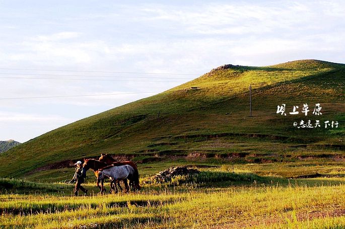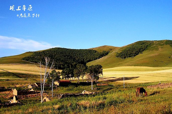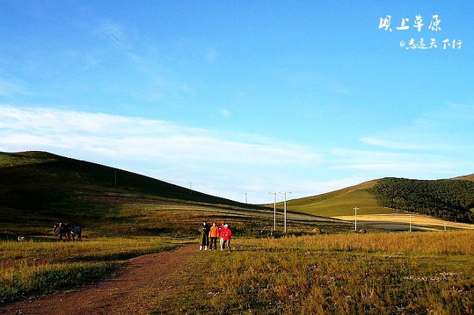 今夜,当我再次翻看照片的时候。精神又一次恍惚了,似乎只要我拉开窗帘就会有深深浅浅的绿色向我奔来,似乎只要我推开窗户就会有和着泥土味的青草清香扑鼻而来。于是,将电脑中的画面拉伸到极致,然后开始一点点的浏览从出发到回京的一切。心里默念着:八月,我从坝上走过……