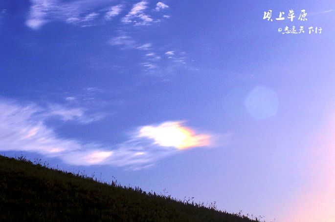 “快看,七彩云!”众人不约而同的抬头,望向东方。就在朝阳的左右,各飘着一片带着七色光泽的云彩。顷刻间,快门声此起彼伏的响起。与此同时,远处的村庄居然蒙上了一层蝉翼般的白纱,在晨风的推动下移动着莲花碎步,继而远处的那番景象变得曼妙而梦幻起来。
