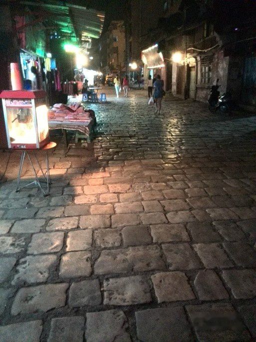 傍晚在街上乱走,顺便吃饭,逛街,看看古迹。离如家最近的是古塔公园,在城里有一坐小山丘,山上有一古白塔。通向白塔的路被铁丝网门关闭着,不知白天是否开放。入夜,射灯照亮了古塔,很远都能望到这个亮丽的塔,好象塔成了安顺城的标志。塔山公园北有一寺,叫圆通寺,这天好象是释迦牟尼的诞辰,但寺庙游人稀少,而公园边的广场却热闹得很,中国大妈们开始跳广场舞。街上人来人往,川流不息。
